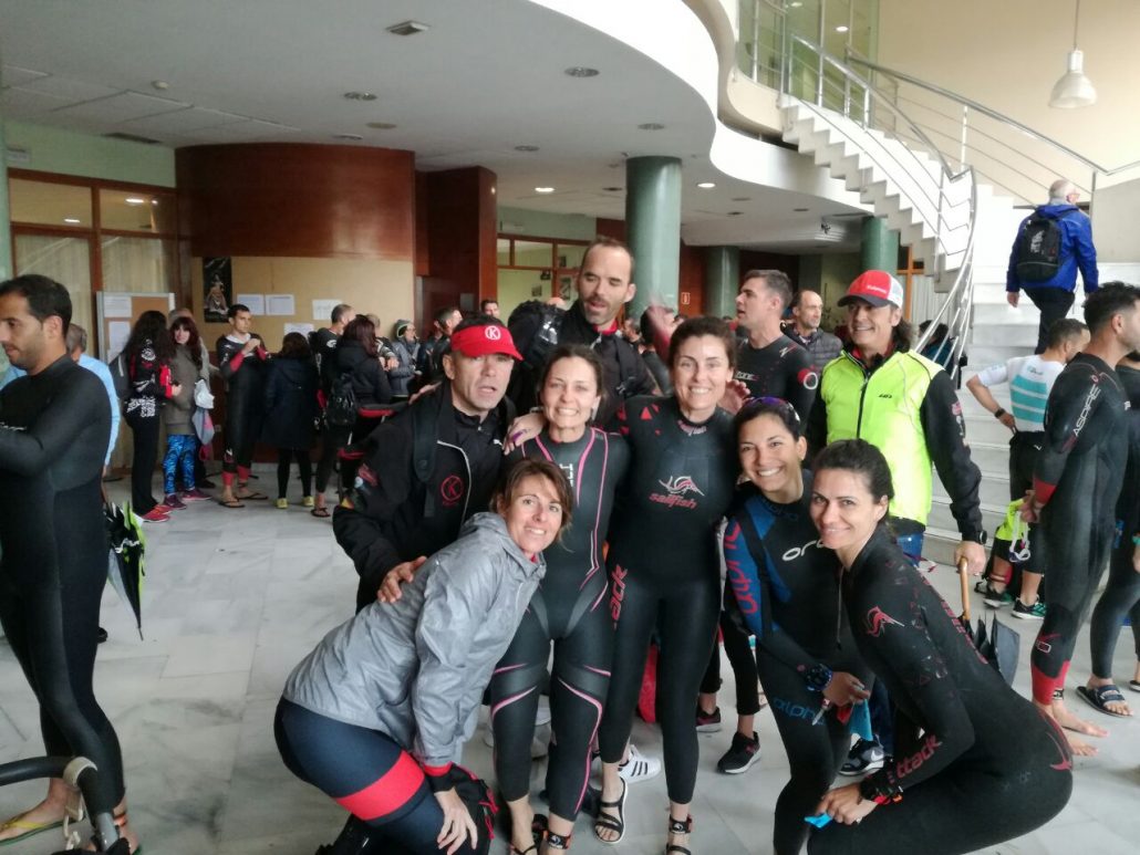 Pero horas antes ya había dejado, la verdad que muy tranquilamente, todo preparado en Boxes, y con el neopreno puesto me dirigí al pantalán de salida con todos mis compañeros de equipo.