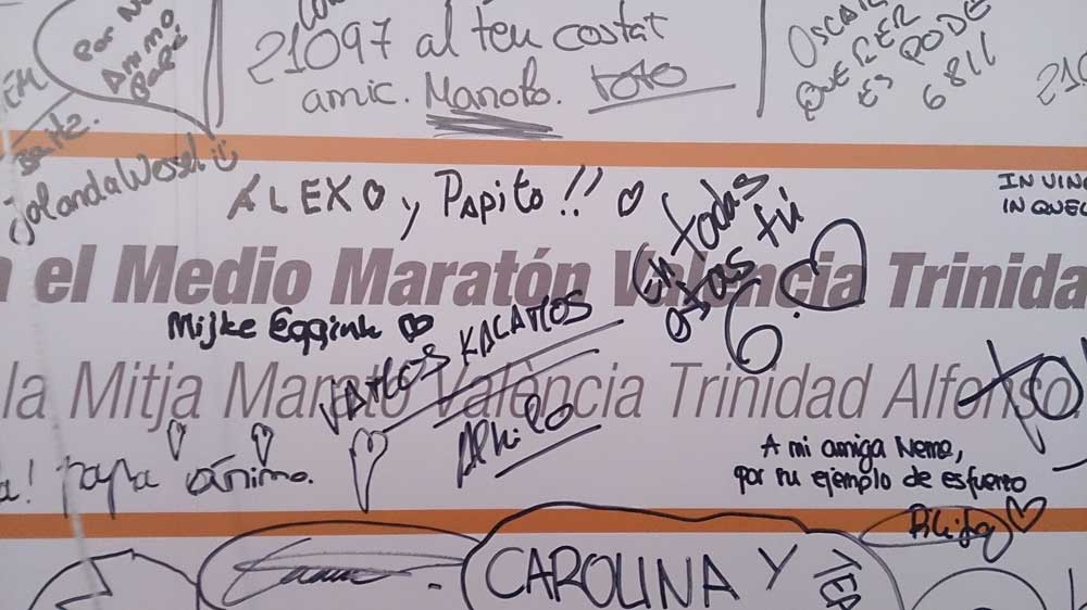 Estamos en el km 16 y mi marido, fiel liebre, no da crédito a lo fuerte que estoy, unos ligeros calambres en las rodillas hace que bajemos un poco la velocidad pero allá vamos sin parar hacia la meta, se oyen los tambores, la música y la gente a los lados gritando tu nombre y dándote ánimos.